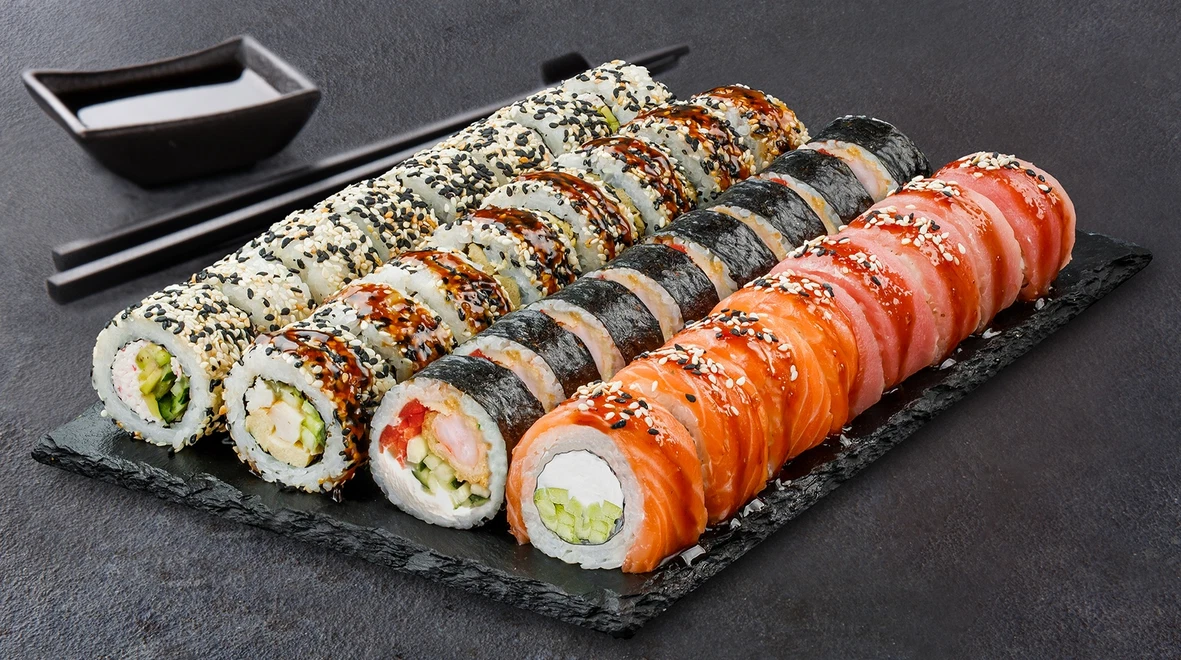 Кожен рол у великих сетах має свою унікальну історію та характер. Наприклад, Кранч з креветкою став справжнім хітом завдяки поєднанню соковитого морепродукту та хрусткої паніровки, яка створює той самий «звук задоволення» при кожному укусі. Філадельфія з вугрем — це вибір тих, хто віддає перевагу оксамитовій текстурі вершкового сиру в дуеті зі шляхетною рибою, багатою на омега-3 кислоти. Каліфорнія темпура пропонує гру температур, де гаряча золотиста скоринка контрастує з ніжною начинкою. Запечений рол з тунцем демонструє, як термічна обробка розкриває нові грані смаку океанічної риби під апетитною сирною шапочкою. Фелікс рол з копченим лососем додає пікантності та аромату легкого диму, а класичні Нігірі з креветкою завершують композицію як символ чистоти японських традицій. Ресторанний бізнес сьогодні орієнтується на персоналізацію, тому можливість знайти всі ці позиції в одному сеті є вагомою конкурентною перевагою.