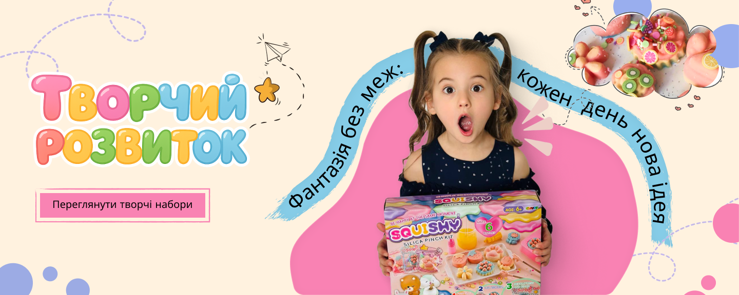 Бренди на кшталт BIG BANG SCIENCE, Jar Melo, Ebayro, Mideer та TOOKY TOY створюють набори, які поєднують ігровий процес із навчальним. Дитина не просто малює або ліпить — вона розуміє хімічні реакції, створює елементи декору, збирає пазли, перетворює звичайний пластилін на повноцінний барбершоп або вигадает власну колекцію сквіші.